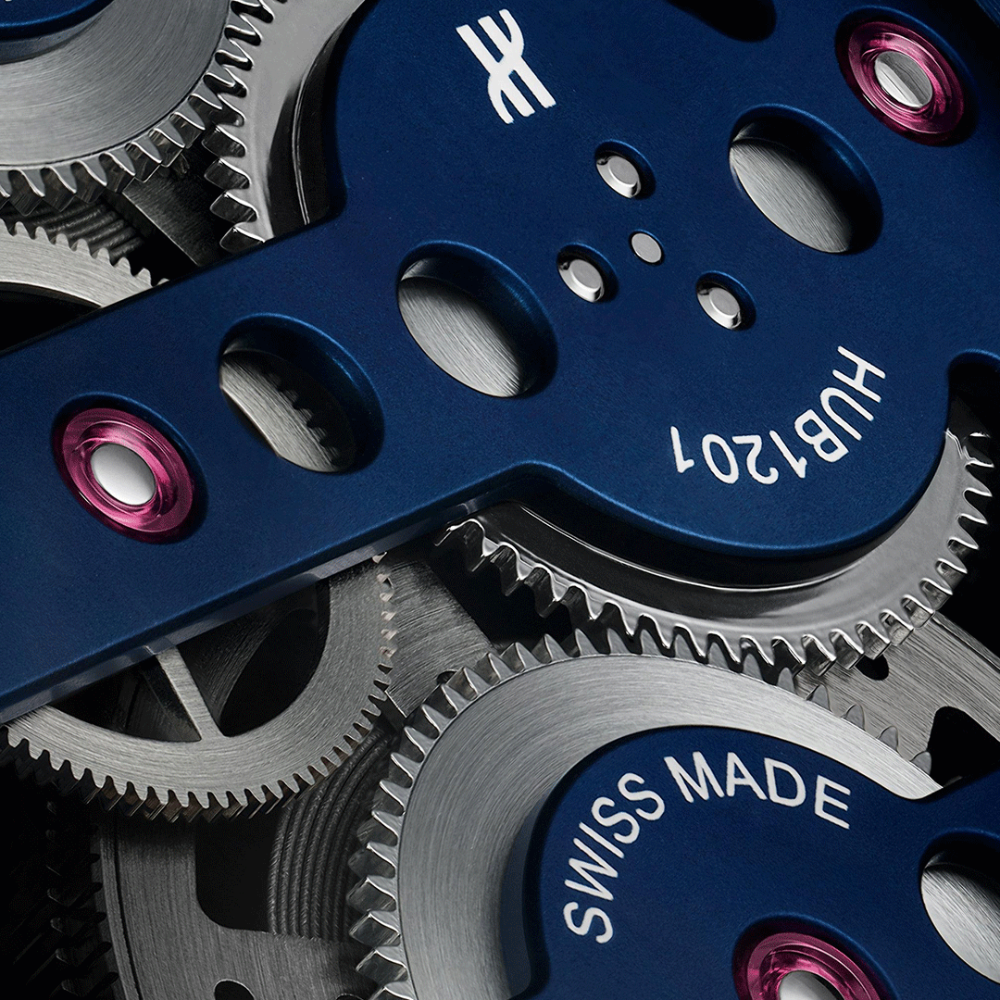 Diameter : 45 mm. Thickness : 15.95 mm. Water resistant to 100 meters. Microblasted and polished blue ceramic Sapphire crystal with anti-reflective treatment. Titanium screws. Blue ceramic and sapphire crystal case back.Bezel : Microblasted and polished blue ceramic. Black composite resin lower bezel. 6 H-shaped titanium screws.Dial : Matte blue skeleton. Movement : Straps and clasp : |