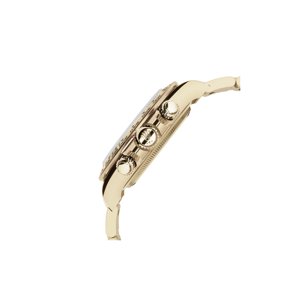 The Rolex Cosmograph Daytona 40 mm Ref. 126508‑0003 is a luxurious chronograph crafted entirely in 18 ct yellow gold. This opulent model features a bright black dial set with diamonds, golden accents, and a tachymetric bezel, making it both a statement of prestige and a high-performance timing instrument for motorsport enthusiasts.