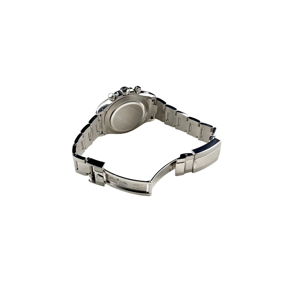 • Case: Solid 950 platinum, 40 mm, Oyster construction with screw-down chronograph pushers and Triplock crown.