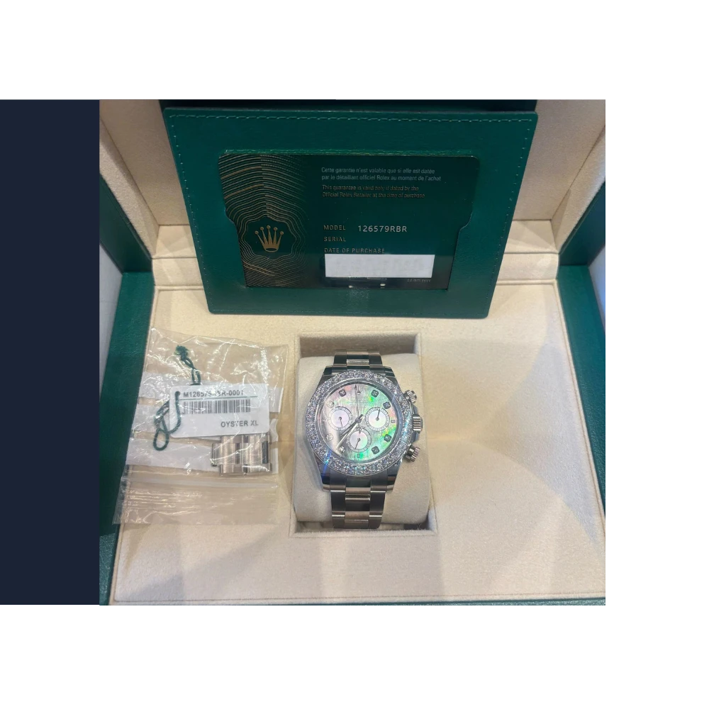 The Rolex Daytona 126579RBR (2024) is a modern icon of gem-set watchmaking, merging the Daytona’s robust chronograph legacy with the sophistication of mother-of-pearl and diamonds. Its rarity, exquisite craftsmanship, and new-generation Caliber 4131 movement position it among the most desirable contemporary Rolex creations, making it an essential addition to high-end collections worldwide.
