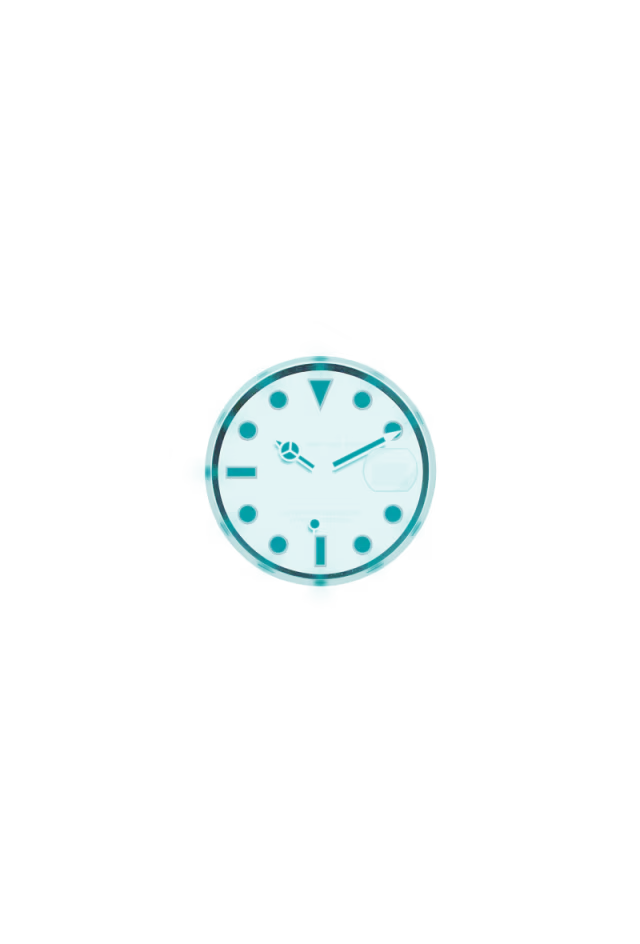 • Dial: Rhodium grey with luminous hour markers, aqua blue seconds hand