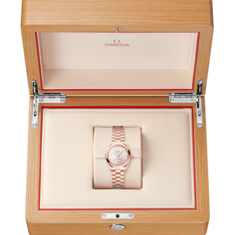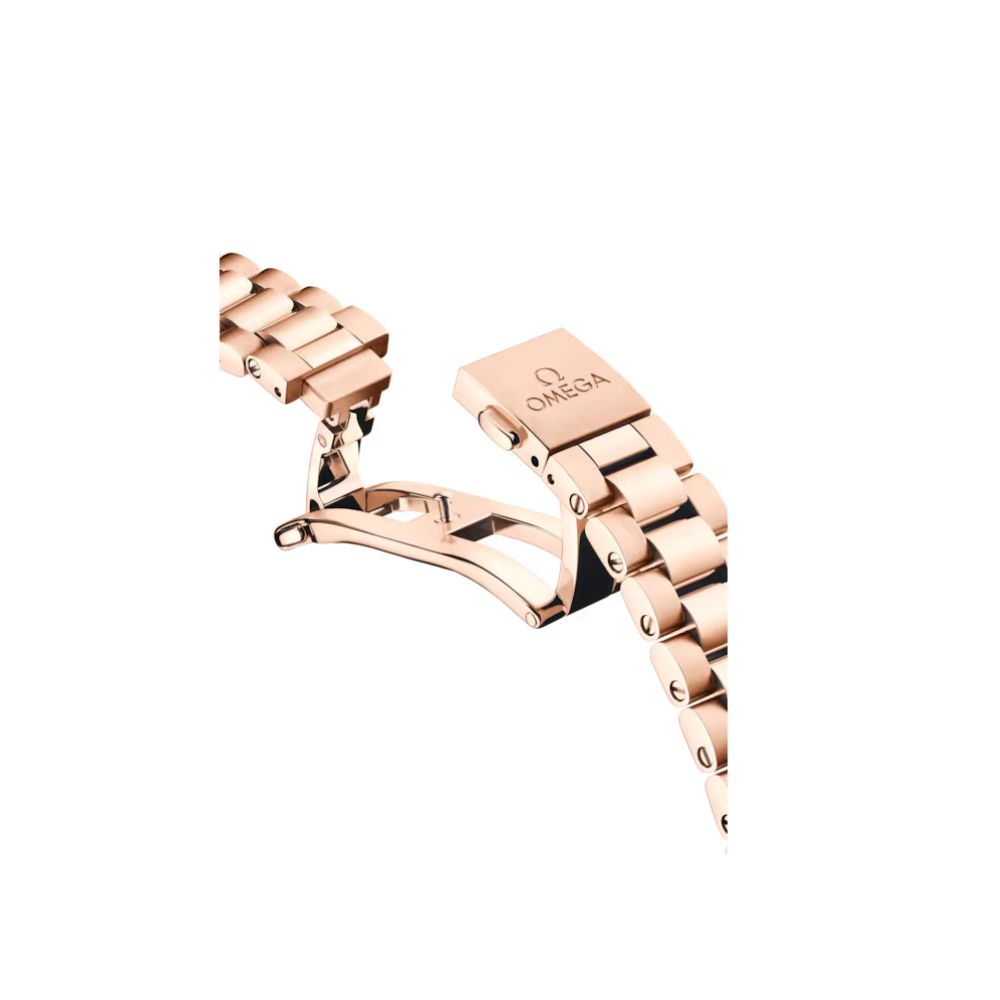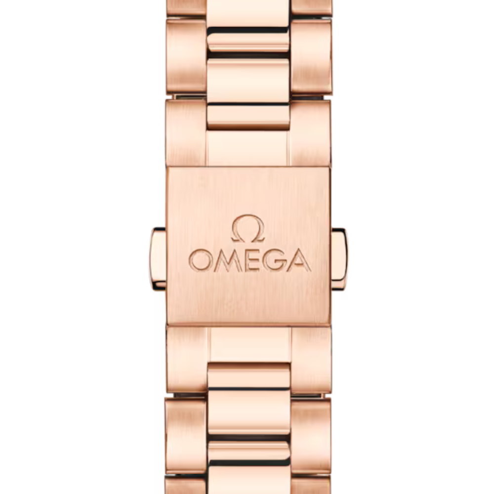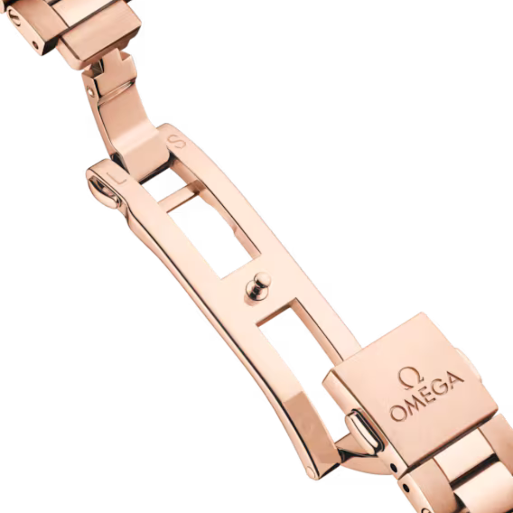 of Omega’s proprietary rose gold and a distinctive linen dial — a compact, luxurious daily piece for